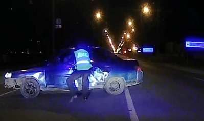 На неоднократные требования об остановке, подаваемые с помощью сигнального громкоговорящего устройства, водитель не реагировал. Через некоторое время водитель не справился с управлением, выехал на встречную полосу, где совершил столкновение с автомашиной Hyundai, после чего съехал с дороги и опрокинулся. В результате ДТП пострадала 19-летняя девушка-пассажир автомашины ВАЗ-2110, правонарушитель был задержан сотрудниками ГИБДД.