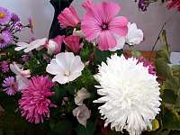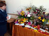 Конкурсную выставку организовали в кабинете Совета ветеранов. Участники могли использовать для дизайнерского оформления букетов любые природные материалы, на которые природа в этом году не поскупилась. Но центром каждого сюжета в любом случае оставались цветы. Судя по беседам, которые велись на выставке, участники которых непринужденно употребляли такие слова как «лаватера», «рудбекия», «дербенник» и «цинерария», уровень любительства во флористике они уже давно и успешно преодолели.