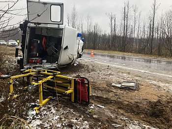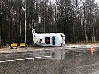 На 97 км автодороги «Йошкар-Ола-Козьмодемьянск» 32-летний водитель автомашины скорой медицинской помощи, предварительно, не выбрал безопасную скорость движения, не справился с управлением и совершил опрокидывание на правую сторону. В результате ДТП травмы получили двое медицинских работников.