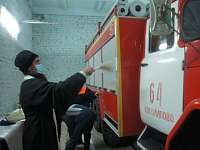 На “новоселье” с пустыми руками не ходят, начальнику пожарной части №64 были вручены ценные подарки (телевизор и предметы мебели). Батюшка местной церкви провел обряд освящения личного состава, пожарных автоцистерн и помещений новой части.