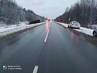 28 ноября около 14 часов на 41 км автодороги Вятка 36-летний водитель автомашины Iveco в сложных погодных и дорожных условиях, по предварительным данным, при выполнении обгона не справился с управлением транспортным средством, в результате чего грузовик опрокинулся. Управлявший автомашиной мужчина, предвпрительно, не был пристегнут ремнем безопасности и выпал из кабины.