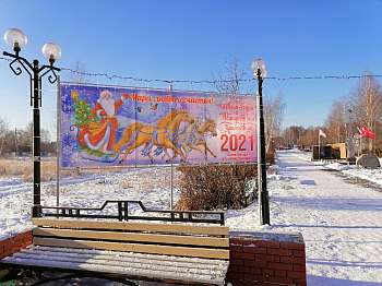 Так, главная площадь городского поселения Приволжский украсилась новогодним баннером. Праздничное полотно традиционно расположилось на Аллее Победы в центре поселка.