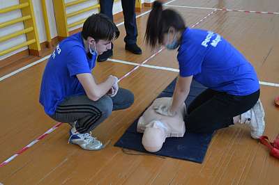 Проводятся занятия с активистами и волонтерами по оказанию первой помощи, по завязыванию страховочных узлов. Волонтеры дальше обучают учащихся школы на классных часах.