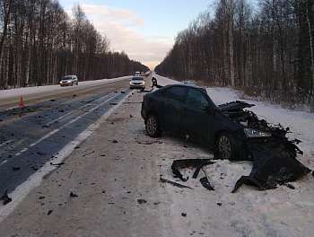 Сегодня около 7 часов 40 минут в Медведевском районе (Марий Эл) на 78 км автодороги «Вятка» водитель автомашины Skoda Rapid, по предварительным данным, не выбрал безопасную скорость движения, не справился с управлением, выехал на сторону дороги, предназначенную для встречного движения, и совершил столкновение с движущейся во встречном направлении грузовой автомашиной Scania.