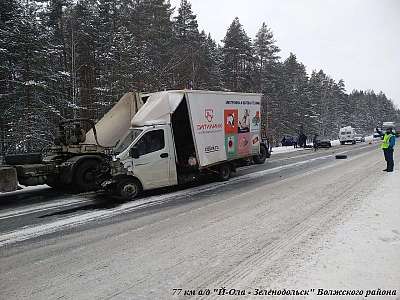 11 февраля около 15 час. 15 мин. , на 77 км автодороги «Йошкар-Ола – Зеленодольск» Волжского района (Марий Эл), 28-летний водитель, управляя автомашиной Toyota, по предварительным данным, не выбрал безопасную скорость движения, обеспечивающую постоянный контроль за движением транспортного средства, не учел дорожные и метеорологические условия, не справился с управлением, совершил выезд на полосу дороги, предназначенную для встречного движения, где совершил столкновение с движущейся во встречном направлении автомашиной ГАЗ-2824 под управлением 44-летнего водителя, после чего движущаяся позади автомашины Toyota автомашина ВАЗ-2114 под управлением 20-летней девушки совершила столкновение с ГАЗ-2824, а также движущаяся позади автомашины Toyota грузовая автомашина Mercedes под управлением 39-летнего водителя совершила столкновение с автомашиной ГАЗ-2824 и ВАЗ-2114. В результате ДТП на месте происшествия скончались пассажиры 19 и 28 лет, а также с тяжелыми травмами доставлены в больницу водитель и 18-летний пассажир Toyota, а также госпитализированы водитель и 28-летний пассажир ГАЗ-2824.