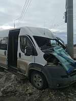 От удара микроавтобус совершил наезд на опору линии электропередач. В результате ДТП в больницу доставлены четыре человека: оба водителя и двое пассажиров микроавтобуса.