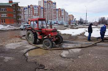 Администрацией города Йошкар-Олы силами муниципальных предприятий продолжаются работы по откачке воды на ул. Ползунова.