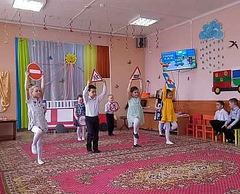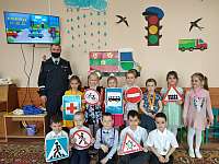 Сотрудник ГИБДД показал сигналы регулировщика и разобрал с детьми дорожные знаки.