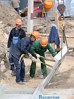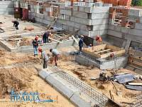 Уже заканчиваются работы по укладке фундаментальных плит. Возводятся стены цокольного этажа. Параллельно прокладываются электрические кабеля и теплотрасса.