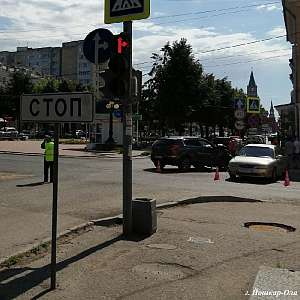 16 июня, около 8 час. 30 мин. на перекрестке бульвара Чавайна и Советской г. Йошкар-Олы (Марий Эл), 55-летняя женщина, управляя автомашиной Kia Spectra, предварительно, на регулируемом светофором перекрестке в нарушение требования дорожного знака 4.1.4 ПДД РФ «Движение прямо или направо» повернула налево, вследствие чего не уступила дорогу и совершила столкновение с автомашиной Kia Sportage под управлением 38-летней женщины, которая двигалась прямо на разрешающий зеленый сигнал светофора. В результате ДТП телесные повреждения получила водитель автомашины Kia Spectra.