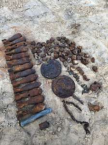 Тщательно обследовав с помощью минно-розыскной собаки найденные предметы, а также прилегающую к месту их обнаружения территорию, специалистами Росгвардии были обнаружены 82-мм минометные мины в количестве 13 штук, 1 корпус ручной гранаты РГ- 42, 2 гильзы от снарядов к 45 мм противотанковой пушке, 2 дисковых магазина от ручного пулемёта Дегтярёва.