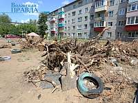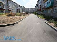 Заасфальтированный двор на ул.Дружбы, 5Выкорчеванные пни будут убраны управляющей компанией
