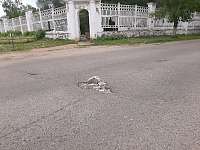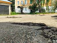 Стыдно за город. Еду я, значит, по ул.Интернациональная и вижу впереди заложенные в яму кирпичи. Ладно, были бы они ровно сложены, так ведь нет — горкой свалили. Остановился и достал эти куски, чтобы днище машины не пробить. Но это оказалось «цветочки». Полное разочарование меня ждало здесь, на площадке возле редакции. В этом районе я впервые… Ну, это тихий ужас… Слов нет. Одни колдобины да ямы — ни одного ровного места. Кругом административные учреждения, а тут такое, извините, безобразие посреди двора.