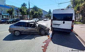 В Йошкар-Оле (Марий Эл) ул.Первомайская ВАЗ 13-ой модели протаранил автобус