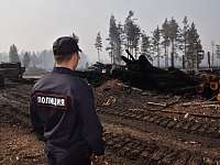Сотрудники полиции обеспечивают охрану общественного порядка во время лесного пожара в Марий Эл