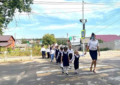 Сотрудники Госавтоинспекции провели пешеходную экскурсию с первоклассниками одной из школ Волжска (Марий Эл)