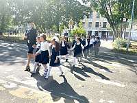 Сотрудники Волжской Госавтоинспекции в День знаний провели пешеходную экскурсию с учениками первых классов одной из школ города Волжска (Марий Эл).