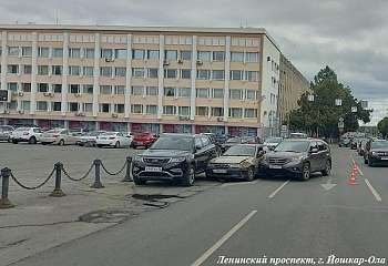 В центре Йошкар-Олы (Марий Эл) столкнулись несколько автомобилей