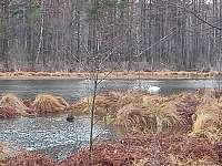 Заканчивается октябрь, а на водоёме в Луговой недалеко от ул.Тимирязева до сих пор осталась пара лебедей — взрослая особь и птенец.
