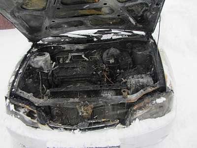 В результате происшествия пламенем уничтожен двигательный отсек машины, под воздействием высокой температуры произошло оплавление внутренней отделки салона.