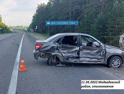 11 июня, в 04.25 ч., на 15 км автодороги «Йошкар-Ола – Зеленодольск» Медведевского района (Марий Эл), в результате столкновения двух автомобилей травмы получил один человек.
