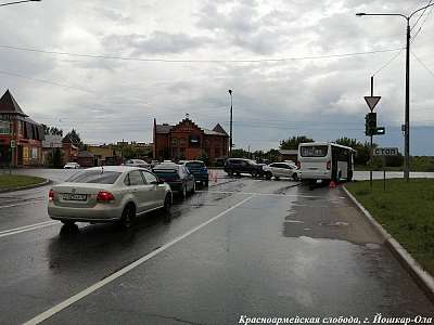 В Йошкар-Оле (Марий Эл) столкнулись две иномарки и пассажирский автобус