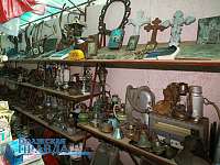 Коллекционные экспонаты повсюду. Начиная с офиса, где наряду с мебелью и техникой гармонично соседствует подновленная и ярко разукрашенная старинная коллекция чугунных утюгов. Заботливо пристроены по полкам образцы литературного творчества, изданные в советский период.