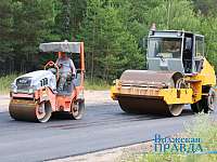 Здесь как раз шла укладка асфальта. Дружно, как по накатанной, трудились грейдеры, асфальтоукладчик, два катка...
