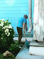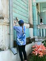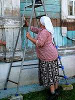 "Фронт работы очень большой. Храм практически в критическом состоянии. Вот посмотрите: висячие опоры, прогнившее деревянное основание у цоколя. Что будет дальше с храмом - мы не знаем пока сами, все зависит от решения свияжского архитектора. А пока делаем все возможное от нас, например, сегодня зачистку", - рассказывает Венера.