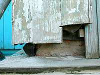 Напомним, что самому храму уже более ста лет. В 30-е гг. церковь подверглась обезглавливанию и закрытию. К концу 90-х благодаря усилиям настоятеля Евгения (Ускова) церковь была восстановлена и начались первые богослужения. Но стоит отметить, что основание и фундамент церкви все те же, что и были более 100 лет назад. А теперь подумайте, что за это время могло произойти с деревянным храмом, который в военные годы был и складом, и магазином, и сельским клубом. На фотографиях отчетливо видны критические моменты.