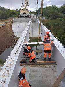 Министерства транспорта и дорожного хозяйства Республики Марий Эл сообщает, что организация ГУКП «Мостремстрой» 5 сентября 2022 года после получения металлоконструкций пролетных строений возобновила работы по капитальному ремонту моста через реку Монага на автомобильной дороге «Кузнецово-Юшково» км 1+227.