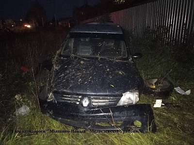 02 октября около 16 часов 45 минут на 1 км автодороги "Мышино-Новый" Медведевского района 24-летний водитель автомашины Renault Logan, по предварительным данным, не выбрал безопасную скорость движения, не справился с управлением и совершил съезд в кювет с последующим наездом на забор. В результате ДТП с различными травмами мужчина госпитализирован. В отношении водителя составлен административный материал за управление транспортным средством в состоянии опьянения. Так же установлено, что он не был пристегнут ремнями безопасности.