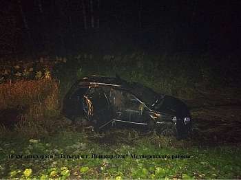 5 октября, около 21.20 ч., в Медведевском районе (Марий Эл), на 16 км автодороги "Подъезд к г. Йошкар-Оле" 30-летний водитель автомашины Lada Kalina, по предварительным данным, не выбрал безопасную скорость движения, не справился с управлением и совершил съезд в кювет с последующим опрокидыванием. В результате ДТП телесные повреждения получил сам водитель.