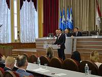 Перед открытием сессии глава города предоставил слово министру культуры, печати и по делам национальностей Республики Марий Эл Константину Иванову, который вручил Благодарственное письмо Главы Республики Марий Эл депутату городского Собрания, директору МАУ «Центр детского здорового питания г. Йошкар-Олы» Антону Волкову.
