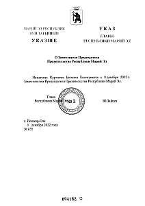 Указом Главы Республики Марий Эл №238 от 08.12.2022 г. Курмаев Евгений Евгеньевич назначен с 8 декабря 2022 г. Заместителем Председателя Правительства Республики Марий Эл.