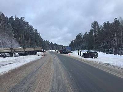 Днем, 30 января, в Звениговском районе (Марий Эл), на 25 км автодороги «Вятка» произошло столкновение легкового автомобиля и грузовика. Предварительно установлено, что 50-летний водитель Renault не выбрал безопасную скорость движения, не справился с управлением, выехал на встречную полосу движения и совершил столкновение со встречной грузовой автомашиной MAN под управлением 30-летнего мужчины. В результате ДТП телесные повреждения получили водитель и 33-летняя пассажирка легковушки.