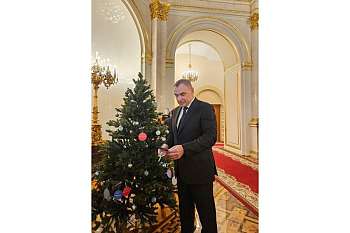 В Георгиевском зале Большого Кремлевского дворца Глава региона Юрий Зайцев снял с новогодней елки шары с пожеланиями детей из Республики Марий Эл и Запорожской области. Ребята написали, что бы они хотели получить на праздник.