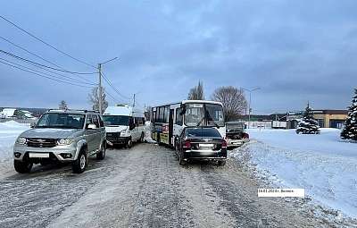 У д.16 по ул. Йошкар-Олинское шоссе водитель автобуса ПАЗ 3204, предварительно, в результате выбора небезопасной скорости, в сложных погодных и дорожных условиях не выбрал безопасную дистанцию до движущегося впереди транспортного средства, выехал на полосу встречного движения, где совершил столкновение с автомашиной Renault, пассажирским автобусом Ford Transit, автомашинами Kia, Volkswagen и УАЗ Patriot.
