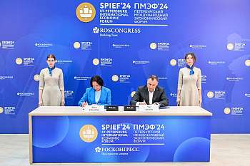 05.06.24 г., г. Йошкар-Ола. На XXVII Петербургском международном экономическом форуме генеральный директор ГК «ТНС энерго» Елена Стельнова и Глава Республики Марий Эл Юрий Зайцев подписали соглашение о взаимодействии.