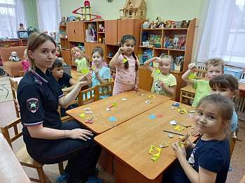 Во время занятия инспектор по пропаганде безопасности дорожного движения Мария Ахмадиева объяснила, что заметить пешехода издалека водителю помогают световозвращатели, которые должны быть на одежде каждого пешехода, а также рассказала дошколятам, о чем нужно всегда помнить: при переходе дороги крепко держать за руку маму или папу, бегать во дворе между стоящих машин очень опасно — водитель может не заметить малыша и начать движение.