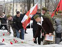 Участники митинга почтили память погибших воинов, возложили цветы к Вечному огню и постаменту, где высечены символичные слова: " Победишь себя - будешь непобедим!".