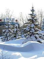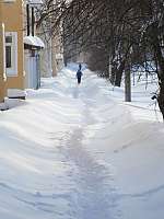 Выход из дома, передвижение до места назначения становится непростым испытанием как для человека, так и транспорта. Некоторые тротуары больше напоминают окопы — высота «бордюров» почти по бедро. Весной, похоже, мы поплывем… А пока картина сказочная.