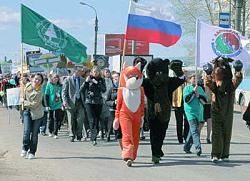 Продолжением акции стал митинг и «Марш парков»: участники слета, в числе которых были сотрудники национальных заповедников «Большая Кокшага» и «Марий Чодра», с транспарантами прошли по главной улице города.