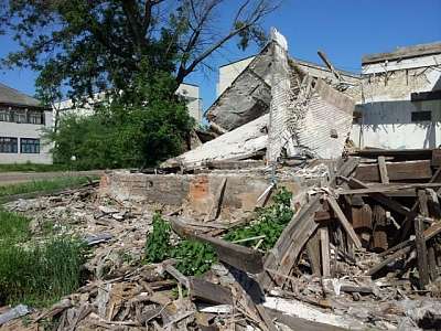 Через дорогу - разрушенное здание. Некогда жилое строение имеет плачевный вид уже давно. В нем собираются неблагонадежные «элементы», которые, кстати, кое-что «заимствуют» и из близлежащей помойки…