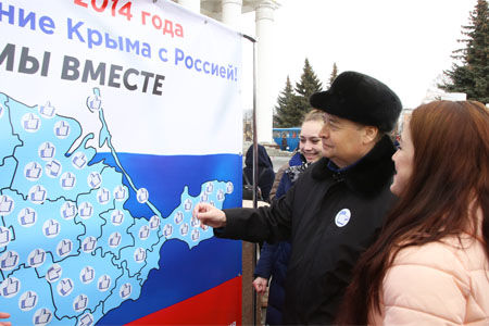 Все выступающие отметили значимость подписанного 18 марта в Москве договора о возвращении Крыма и Севастополя в состав России и поздравляли всех собравшихся с этим историческим событием.
