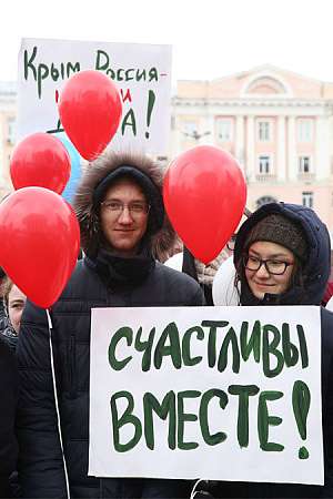 Митинг-концерт «И вновь… с Россией. Навсегда!», посвященный трехлетней годовщине возвращения Крыма в состав России, прошел на площади Ленина, куда пришли студенты вузов, представители республиканской и городской власти, общественники и простые горожане. Участники акции держали в руках плакаты: «Крым наш», «Крым и Россия навеки вместе», «Крым! Севастополь! Россия!», «Вместе – мы сила», «Горжусь Россией» и многие другие.