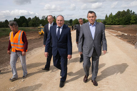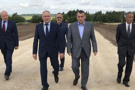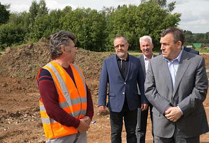 «На данный момент выполнено строительство более полукилометра дороги. Земляное полотно уложено на сто процентов. Согласно заключенному контракту, завершение работ запланировано в первой декаде ноября», - рассказал прораб Юрий Трудников Главе региона Александру Евстифееву.