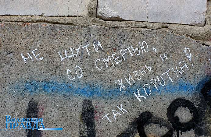 Затаив дыхание, поднимаемся на следующий этаж. Бросаются в глаза надписи у обрыва: «Не прыгай, кто-то любит тебя» и «Не шути со смертью, жизнь и так коротка». Как пояснили в Волжской центральной городской больнице, случаев подобного рода не зафиксировано. К счастью. Но! Раз камень хранит антонимы: жизнь – смерть, повод задуматься над происходящим. Заброшенный корпус больницы – это условия для криминала, созданные взрослыми. И пока он «жив», огородить любопытствующих от посещений туда невозможно. А значит, проблема требует вмешательства.