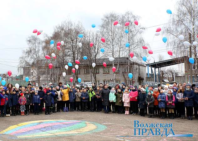 В знак памяти обо всех погибших воинах-земляках школьники запустили в небо шары цветов российского флага.