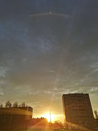 «Световые столбы» выросли в небе над Волжском (Марий Эл) сегодня ночью